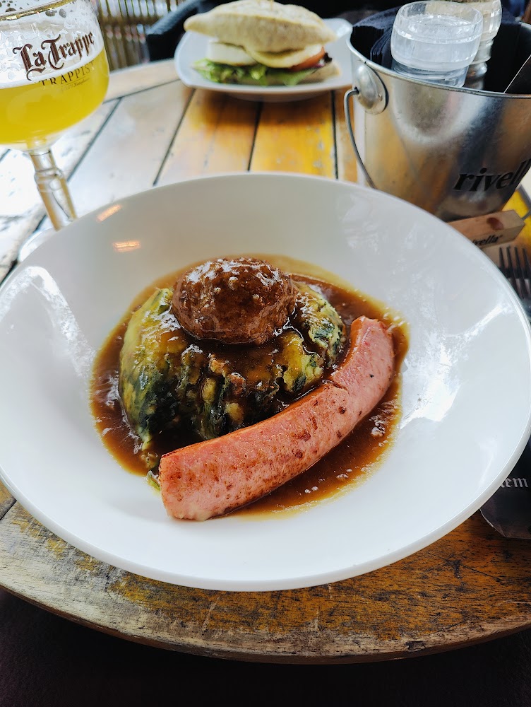 Afterwards, I enjoyed a delicious brie, honey and walnut sandwich for lunch. I had missed delicious vegetarian food! James enjoyed the traditional Amsterdam stamppot.