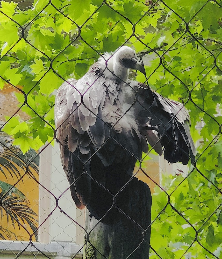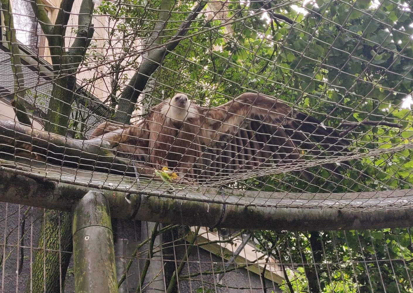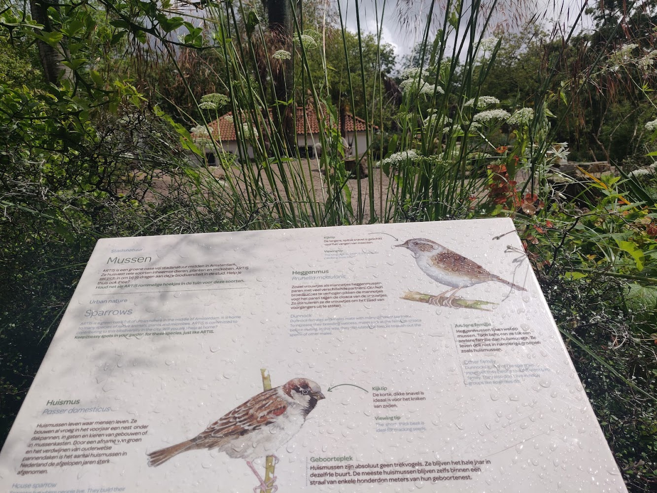 Fortunately, the rain soon let up. I really liked that they had info panels about wild critters that were likely to be found in the zoo, including the ubiquitous House Sparrow (in front of the Ibex enclosure)!