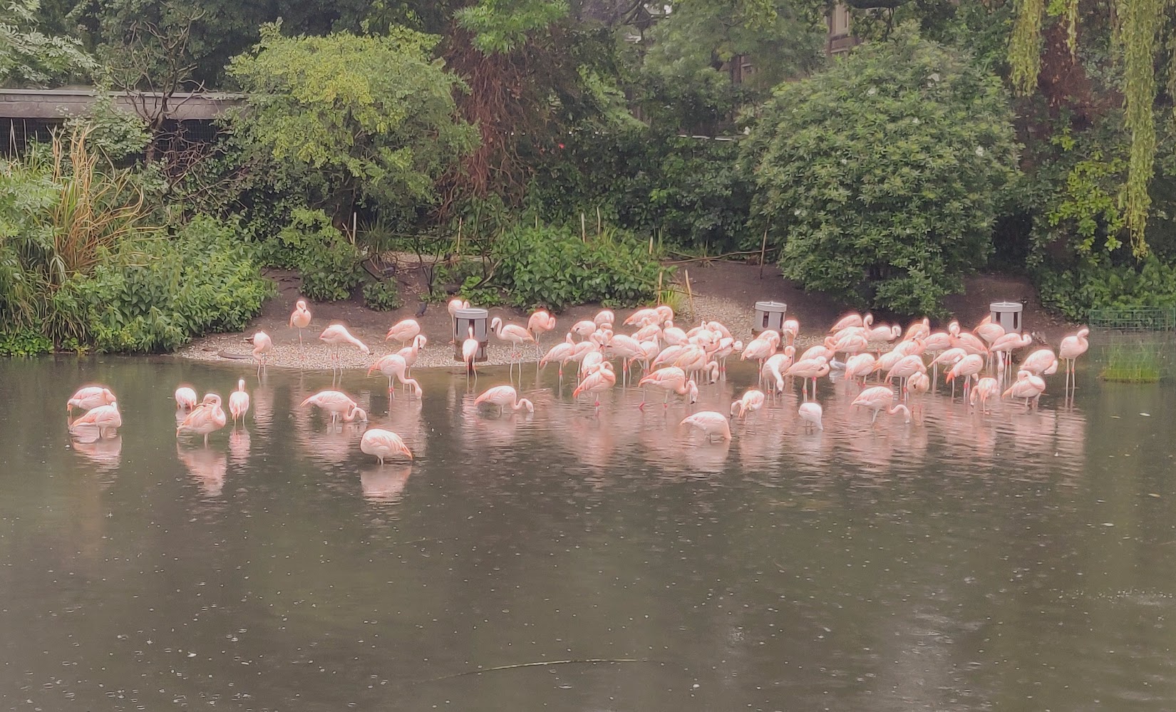 Afterwards we visited ARTIS (the Amsterdam zoo) across the street. It was amazing! Even from the outside you can see flamingos! (in the pouring rain)