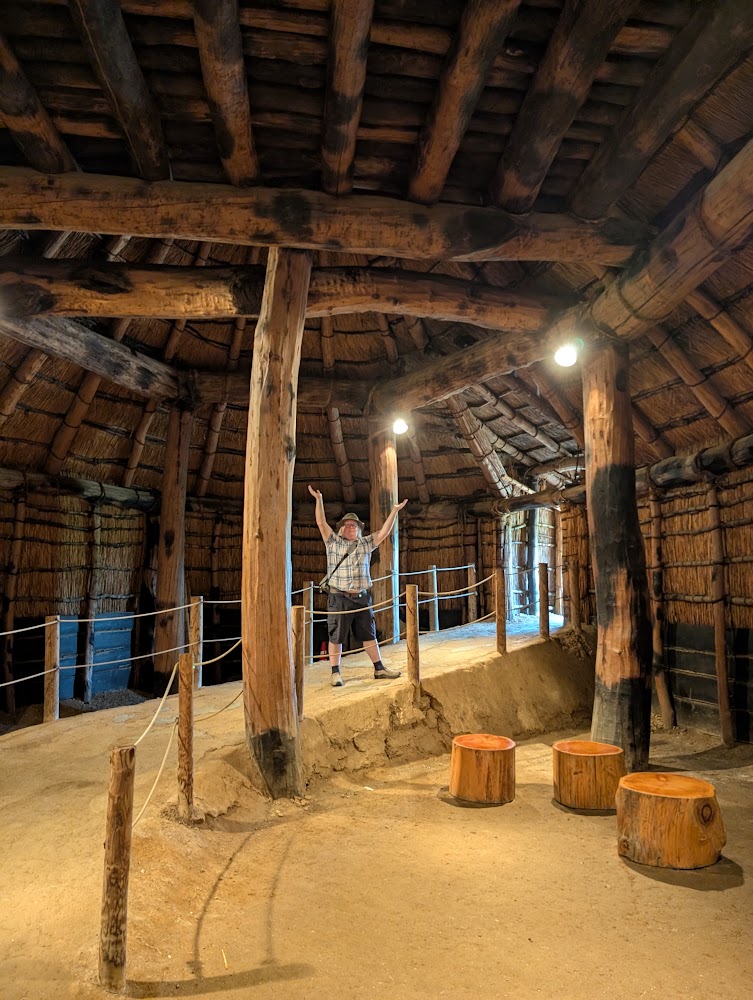 The most impressive building was the longhouse, which was much bigger than I thought they could build at the time. (James for scale)
