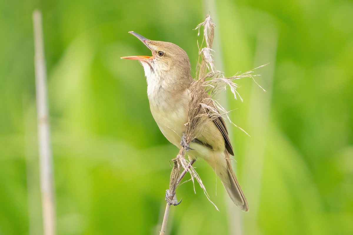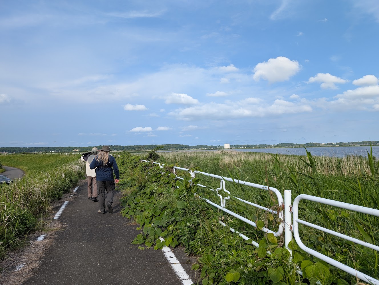 On the second day, we went east from Tokyo to Kasumigaura Bay in Ibaraki prefecture. It's hard to see, but there's a whole bunch of birds hiding in this marsh. Fortunately there was a cacophony of sounds to help find them.