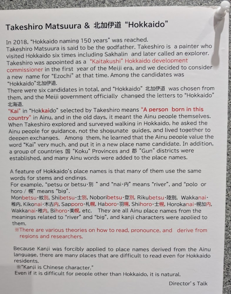 The Hokkaido Museum, true to its name, covered the whole island all the way back to the island's formation. They had a brief section on the Ainu, though not in as much depth as the other museums. I couldn't believe the size of the sea lion furs that the Ainu traded to the Japanese - it was twice as tall as a person!