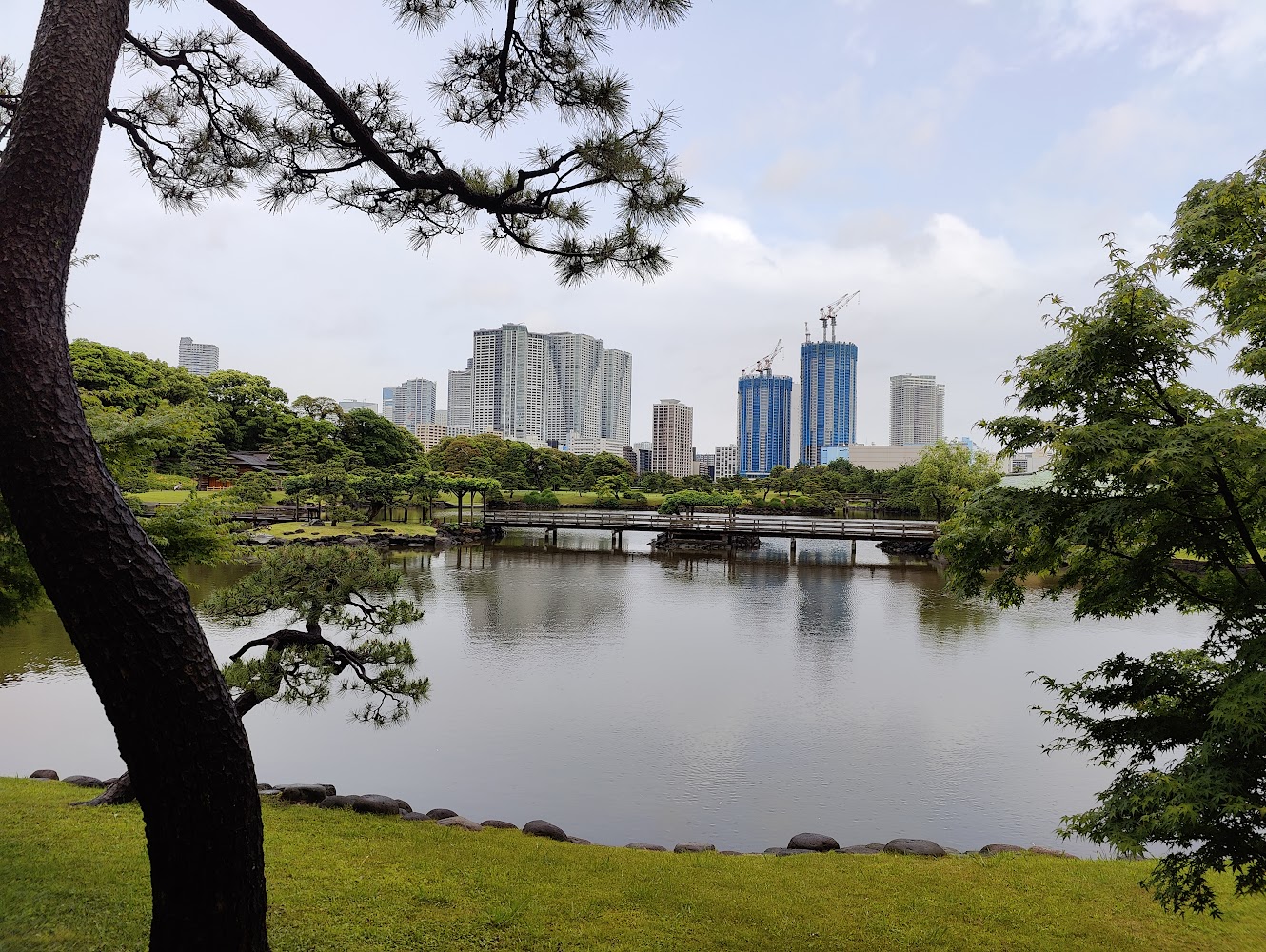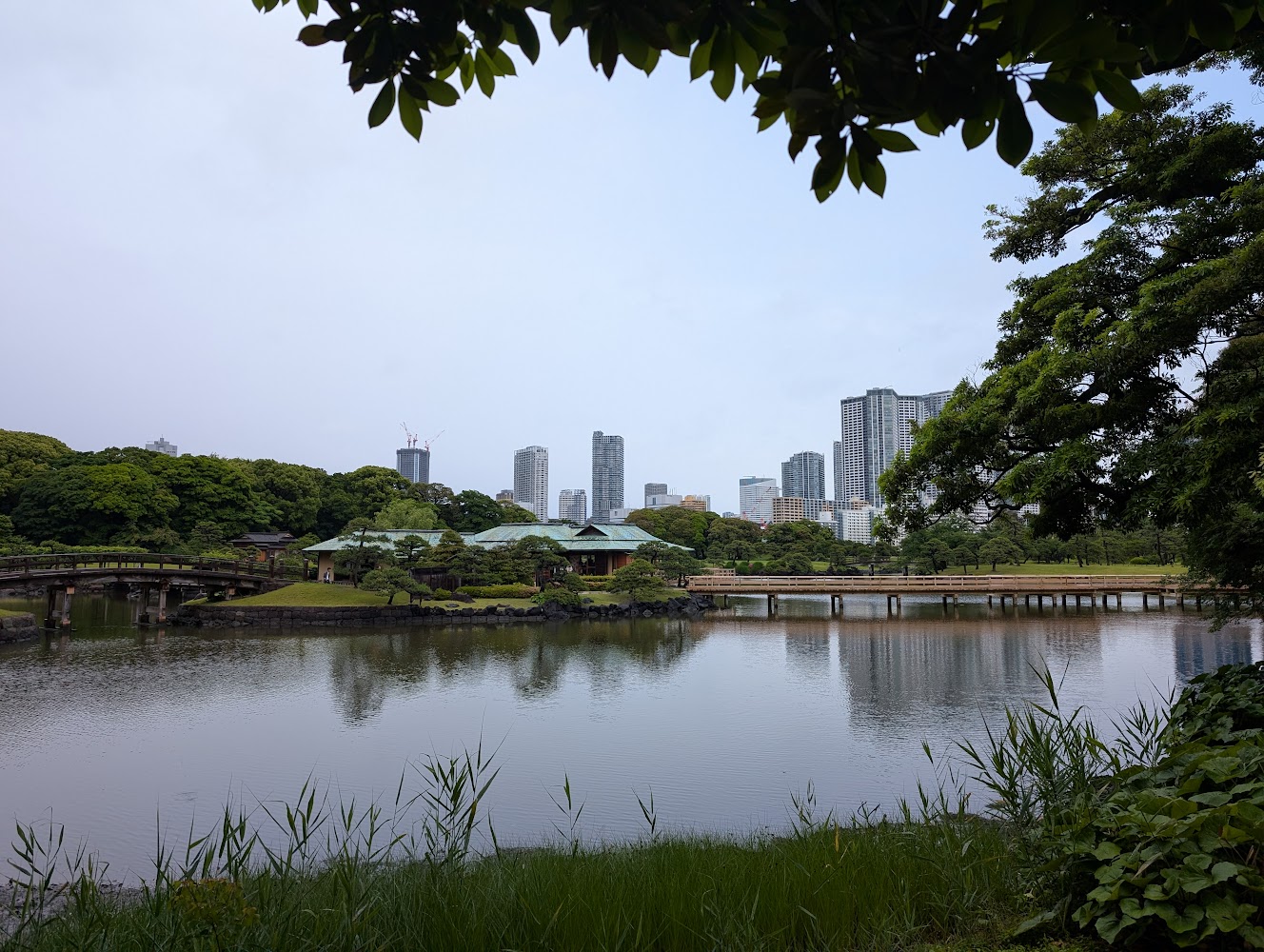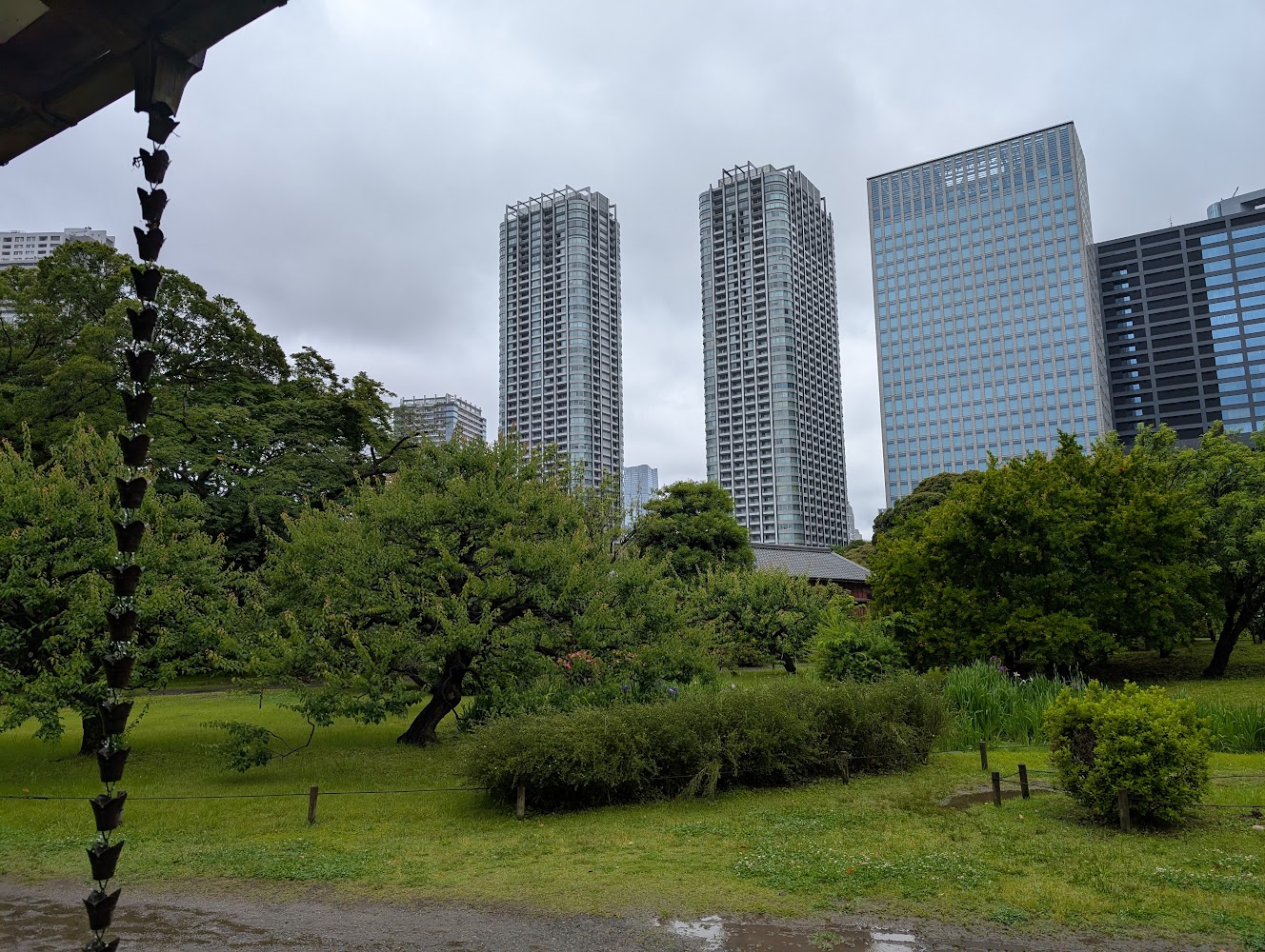 It was bucketing rain outside and we were tired of museums, so we took refuge in Hamarikyu Gardens. Formerly owned by the shogunate, they're now a beautiful paid access park in the middle of downtown and bordering on Tokyo Bay.