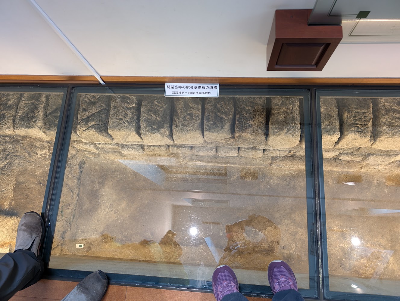 We visited the Old Shimbashi Station Railway museum, a small museum to first railway station in Tokyo that was mile 0 in all the railway measurements for decades. The building itself is a best-guess recreation, since the original was torn down and there were no construction plans and few photos of it! You could see the original foundations, and the signage helpfully informed us that the humidity monitoring equipment was not original.