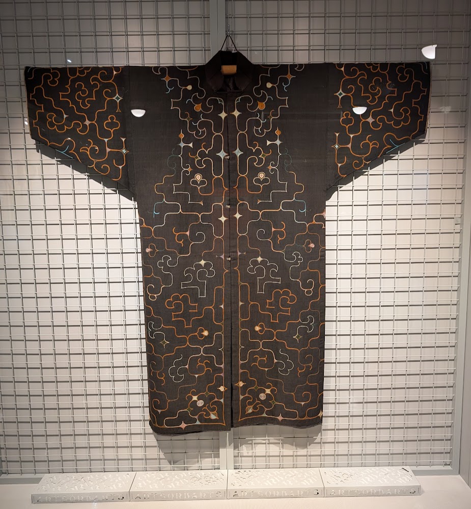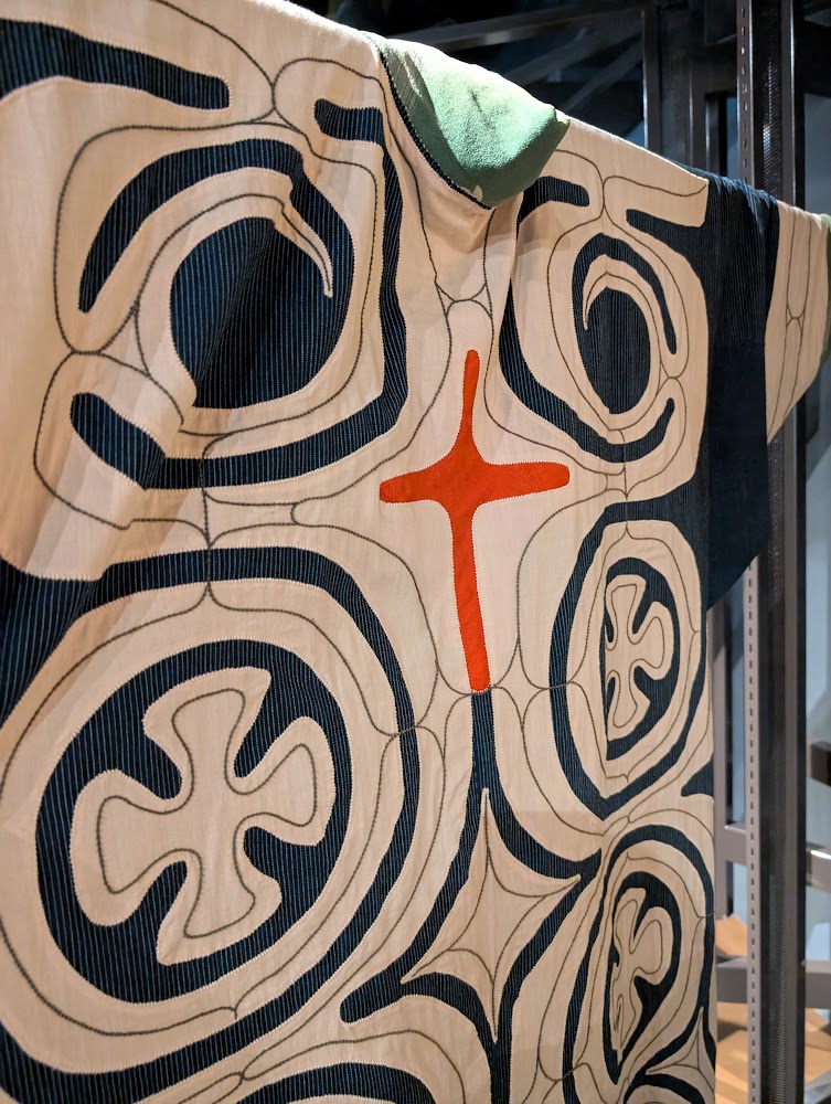 Traditional Ainu clothing was made from a variety of materials, including woven bark, and later cotton and silk that they traded for. Woven bark clothing sounds like it would be coarse and uncomfortable, but it was actually quite soft and wearable! I liked how they used a variety of materials in the same garment - woven bark with cotton, or cotton layered with cotton and silk.