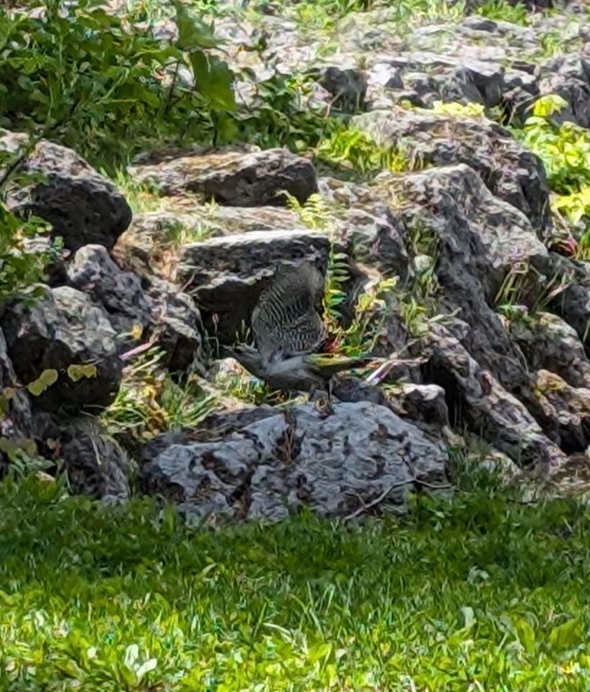Next we went down to the lake visible from the slopes, and walked to a ravine with a waterfall, hidden in a residential area. It was clearly a popular spot with both birds and birders! Lots of birds coming by to take baths, but very shady and dark for photos.