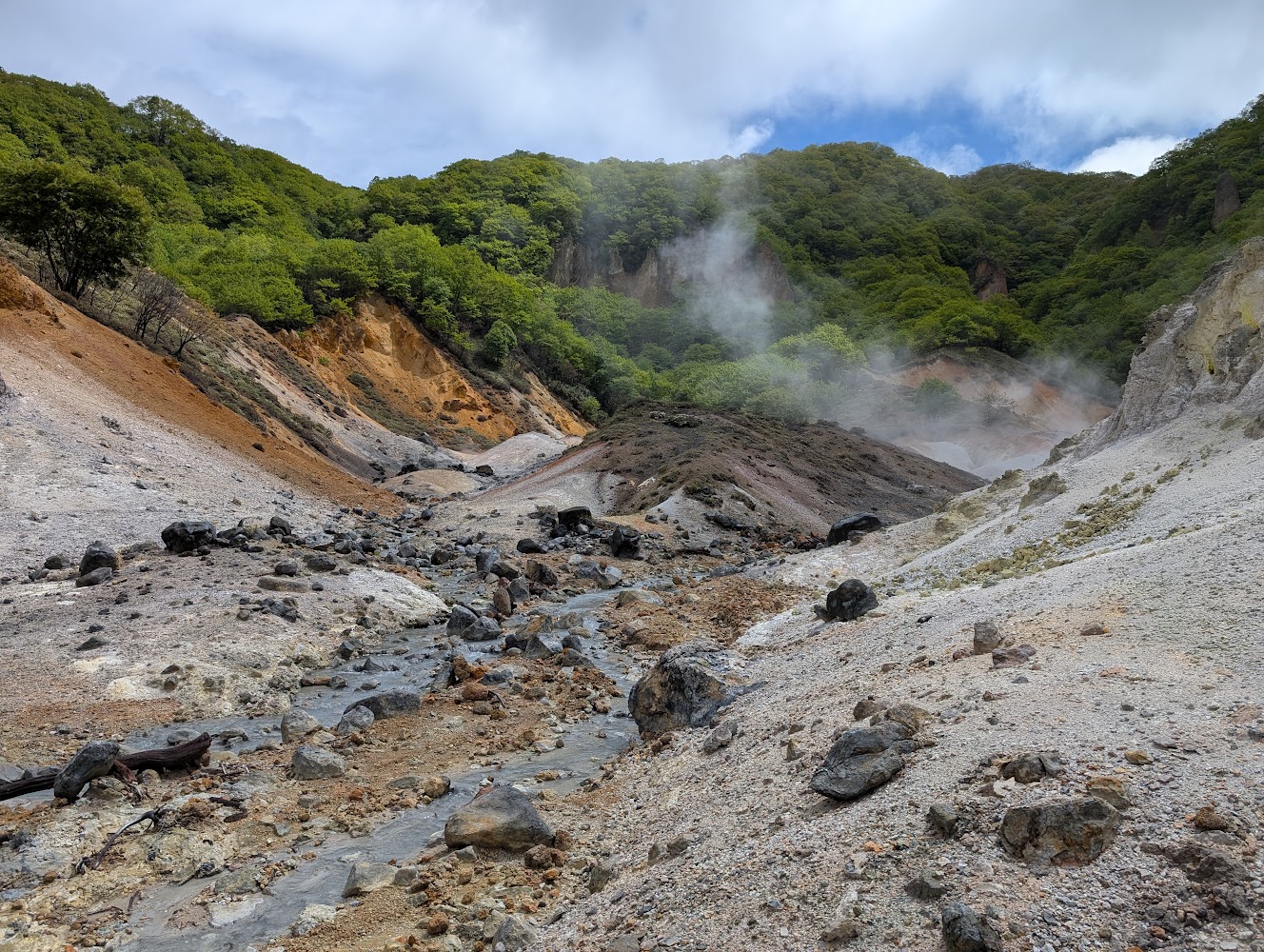 Look at all these colorful rocks! You can really tell there's hot springs in the area.