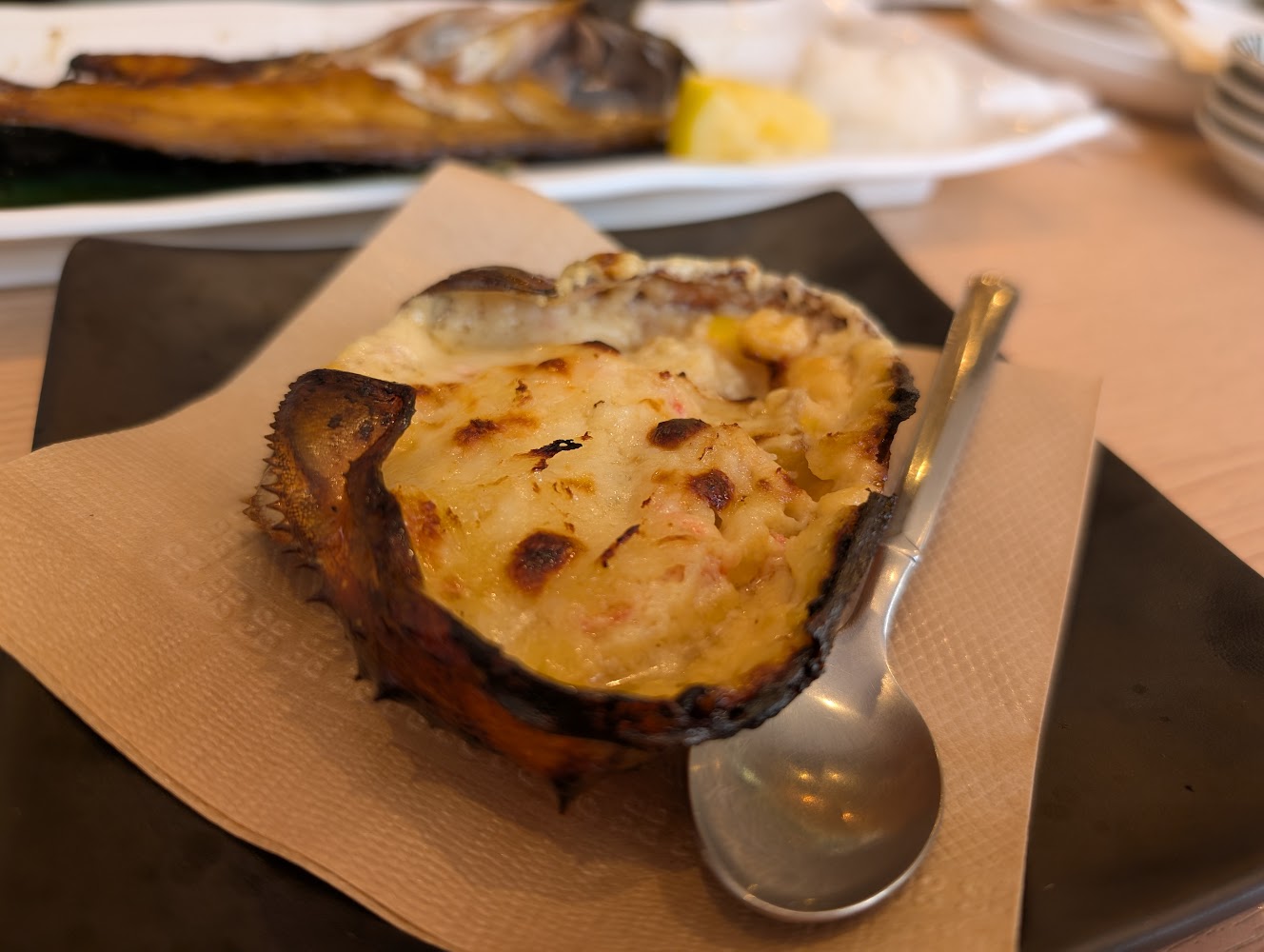 We had lunch at a restaurant in the local seafood market, and I tried crab gratin for the first time.