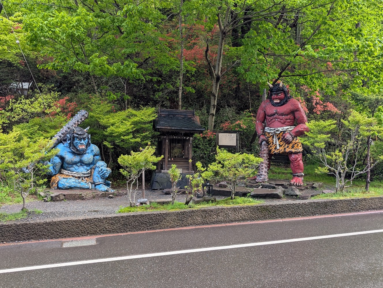 Holly was enamoured with visiting "Hell Valley" for its fantastic geology. Despite some irregular bus times, we made it out there on our way south. Appropriately for Hell, a pair of demons (the park's mascots) guarded the entrance.