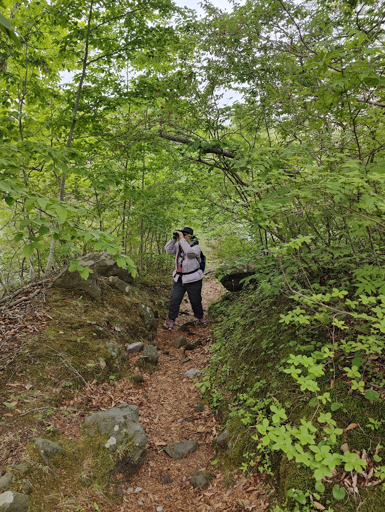 We took a short hike in the adjacent hills to see the nearby lake and some birds. Despite the rain, the Eastern Crowned Warbler came and sat on a branch at eye level and sang its heart out for us. The Narcissus Flycatcher is always a treat to see.