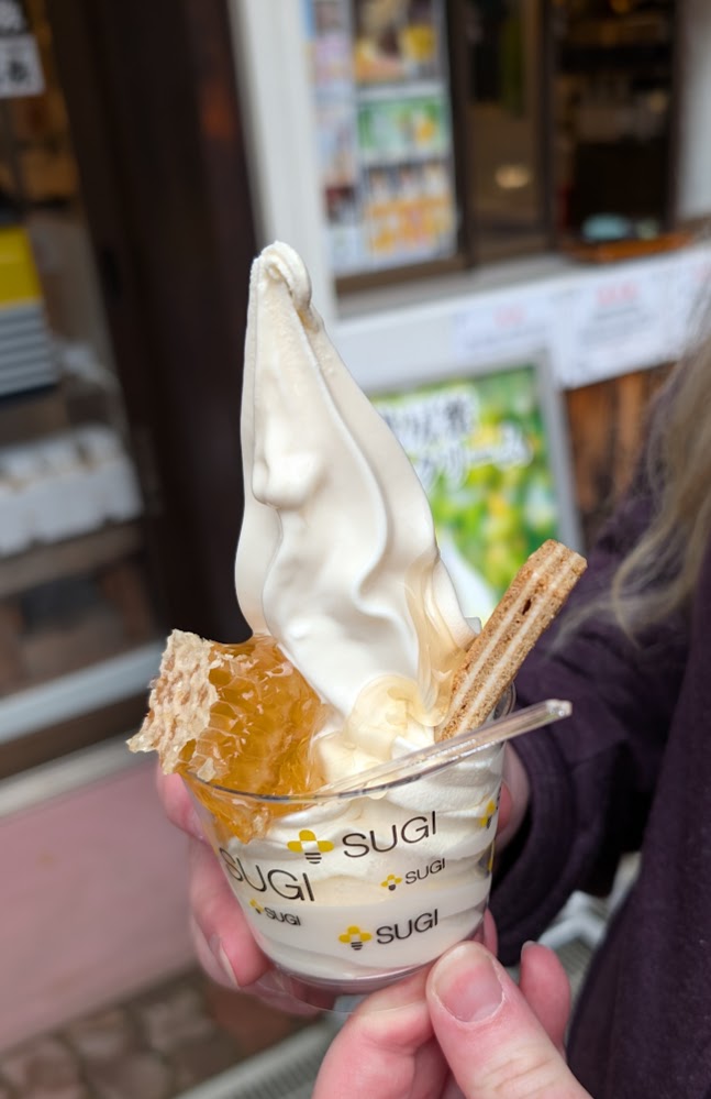Hokkaido is famous for its dairy, so James grabbed some honey ice cream on the way out - delicious!